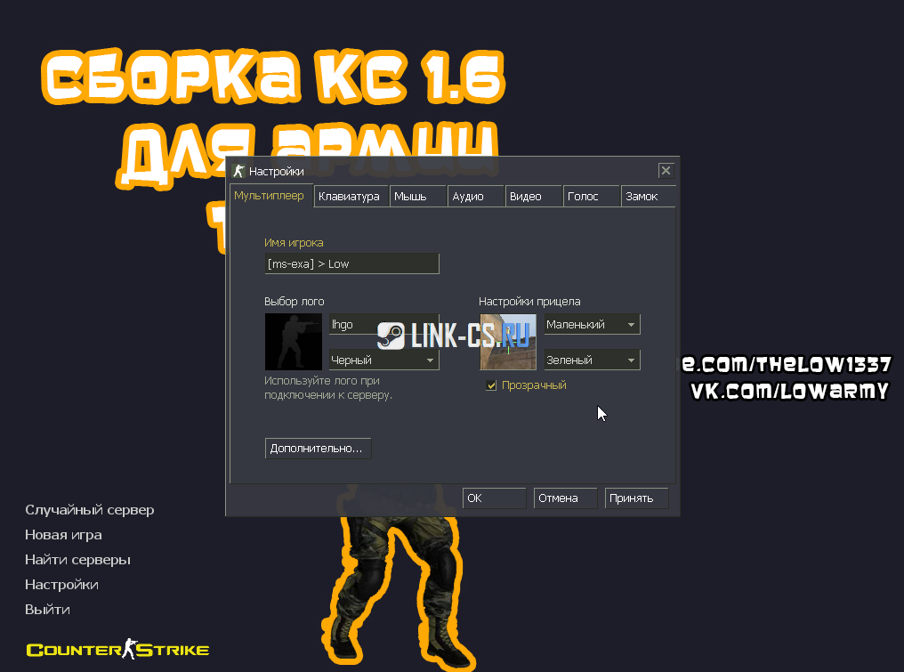 Сборка была полностью русифицирована. При желании можно выбирать русский язык, или английский. Ну и, конечно же, очень важным параметром является конфиг от разработчика. The Low, будучи бывалым игроком в контру. создал собственный конфиг, который был помещен в сборку. Такая информация особенно будет приятна подписчикам видеоблогера.